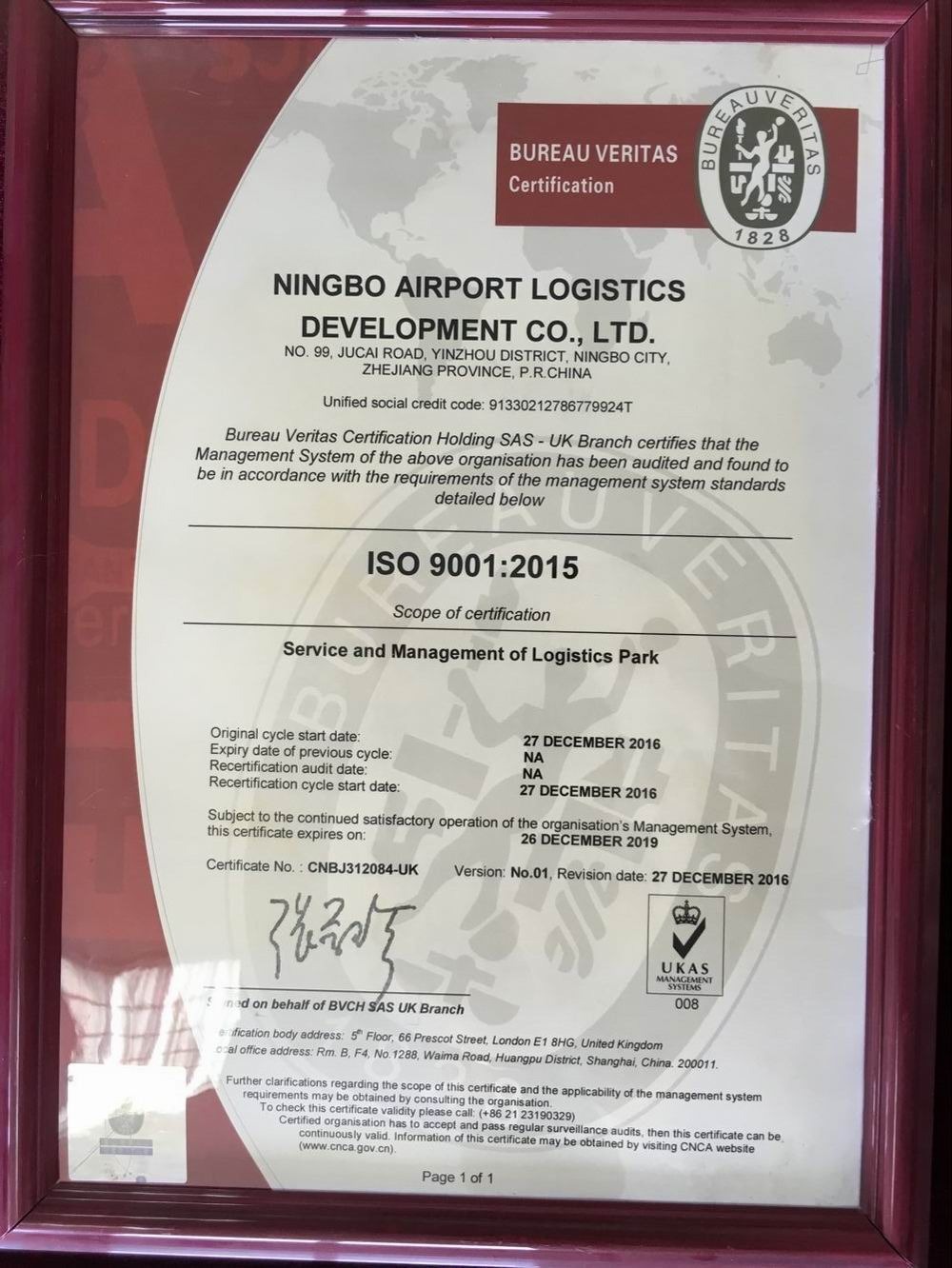 ISO2015英文證書